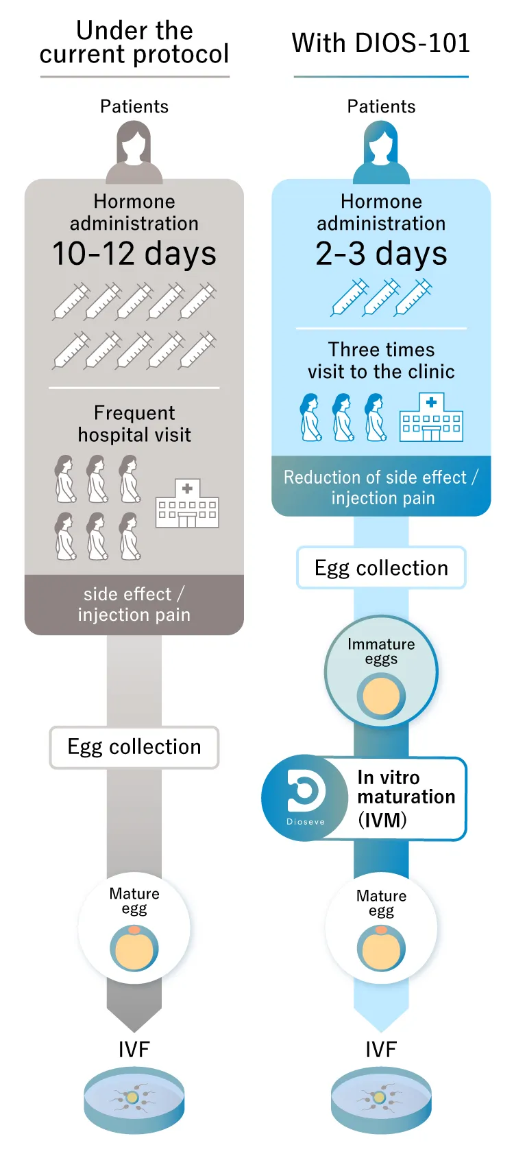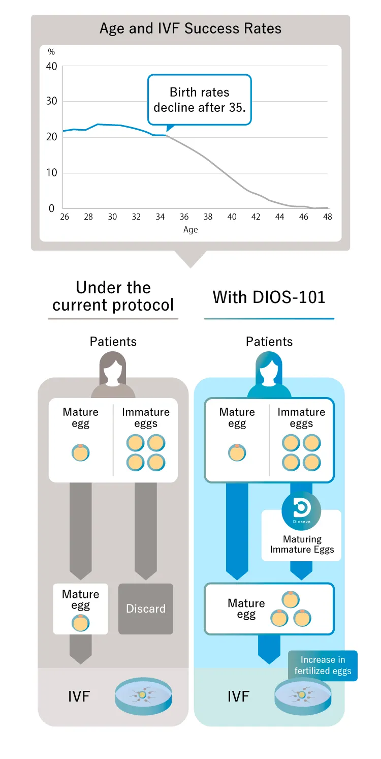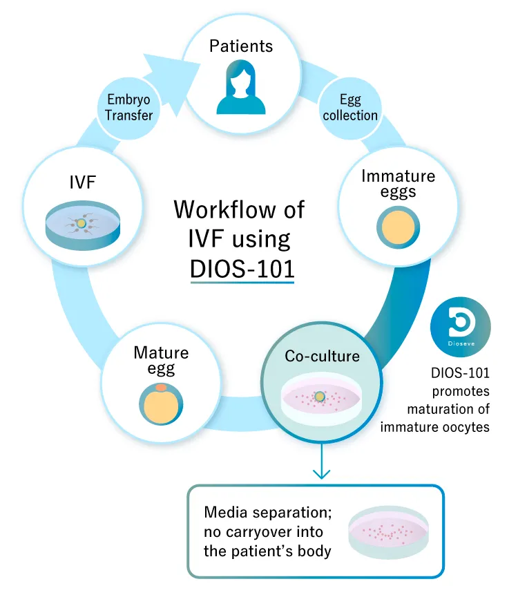 Promoting egg maturation by adding our product (DIOS-101) to the traditional IVF process